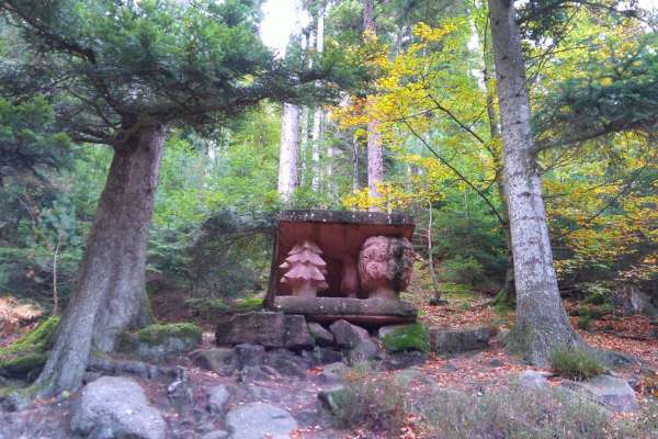 Far from the city, yet close by in the depths of the forest, the Giant Trails were born of an open-air artistic adventure initiated by Sylvain Chartier and the Association Les Géants du Nideck in Oberhaslach. Two sculpture symposia, in 2007 in Lutzelhouse and in 2010 in the Champenay quarry, gave birth to 17 monumental works entitled In situ and La Roche Solaire. This tour allows you to discover 5 of them.