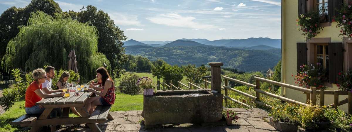 Located in the heart of the forest near the GR531 hiking trail. Specialities: unique menu made using farm produce. Homemade desserts, dairy products. Livestock: ducks, cockerels, rabbits, calves, pigs, lambs. How to get here: from Ranrupt towards Col de Steige then Champ du Feu (D214) Take the left-hand path (5km from Col de Steige). View map