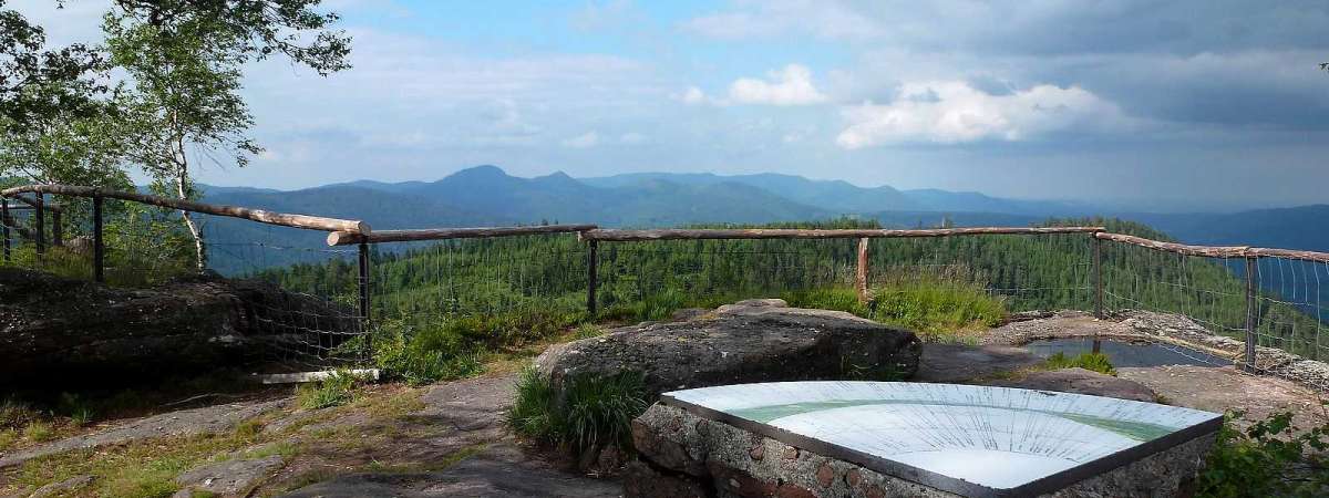 La Chatte Pendue peaks at 899m. From there, you have all-encompassing views of the Champ du Feu range, the Climont and the Donon. But what makes the site so unique is its unusual name, which has given rise to all sorts of stories. It used to be called "Pirre hhatte pendaïe", meaning tall hanging stone. The guttural pronunciation of the "H" or transcription mistakes turned the "hhatte" into "chatte" meaning female cat. So in 1847, a beautiful handwritten Water & Forests map mentions the Pierre de la Chatte Pendue.
